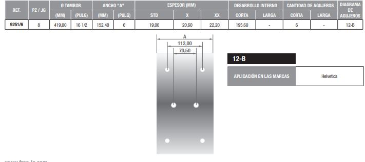 BLOQUES PARA FRENO HELVETICA (6 AGUJEROS)